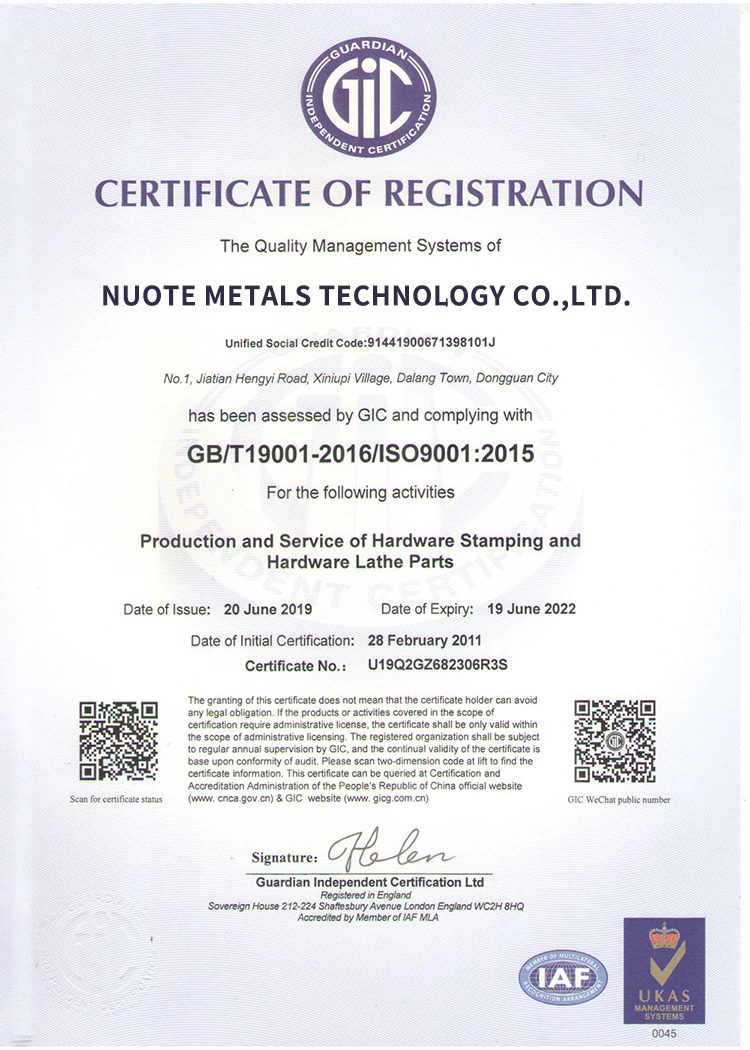 Nuote Metals управляет 4 специализированными производственными линиями, предназначенными для производства заклепок, люверсов, металлических штамповок и точеных компонентов.