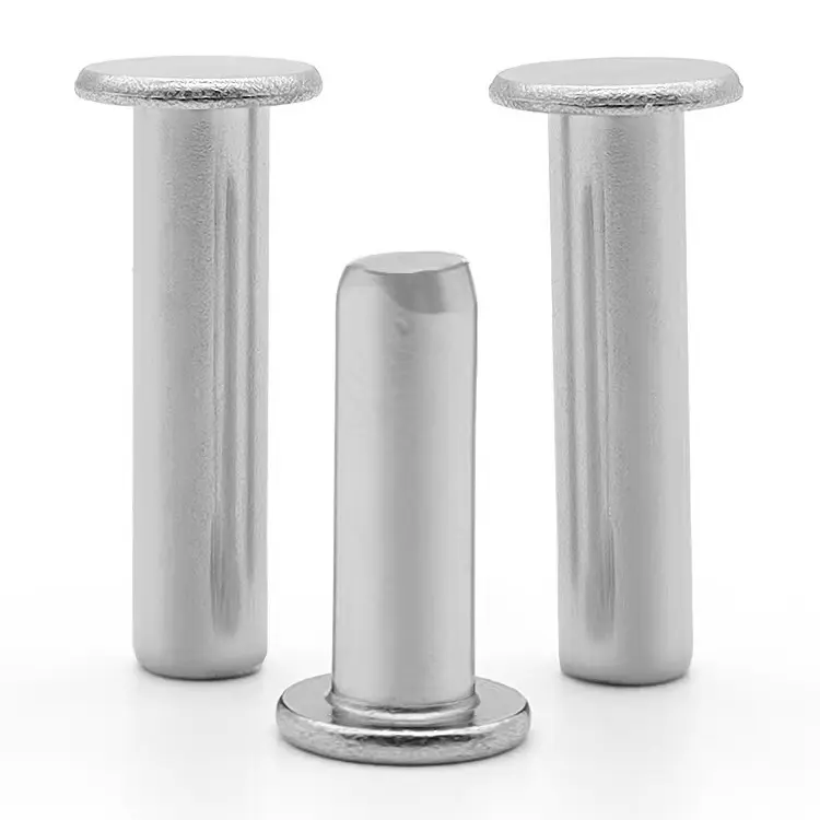 Плоская голова твердые заклепки Иметь плоскую поверхность с заподкой головой с поверхностью подложки, чтобы обеспечить твердое и длительное соединение и обеспечить превосходное затяжение, они предназначены для постоянного соединения двух или более кусков компонентов с предварительно просверленными отверстиями.
