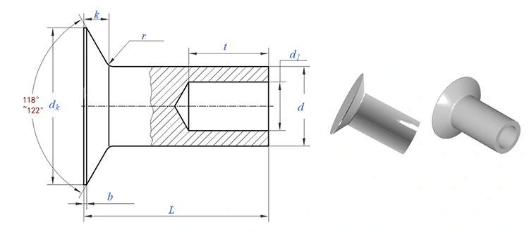 Полуполые заклепки с потайной головкой