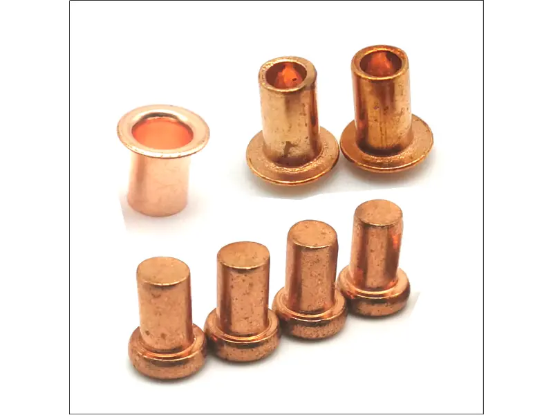 Они бывают всех стандартных типов. Вы можете получитьтвердые медные заклепки, которые прочны и используются там, где требуется большая прочность соединения, например, при изготовлении тяжелой парусины или медной кровли. Естьполутрубчатые медные заклепки, которые быстрее затвердевают и отлично подходят для изделий из кожи или более легких изделий. И естьцельнотрубчатые медные заклепки которые действуют как втулки или шарниры. Стили головок также различаются — круглая, плоская, потайная — в зависимости от того, хотите ли вы, чтобы заклепка была видна или сидела заподлицо.