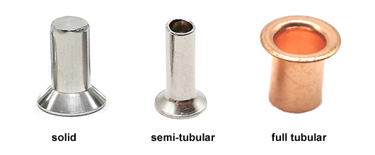 Based on degree of hollowness, rivets can be classified as solid rivets, semi-tubular rivets, or full tubular rivets.