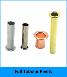 3. Полные трубчатые заклепки из латуни, меди, нержавеющей стали, алюминия и стали.
